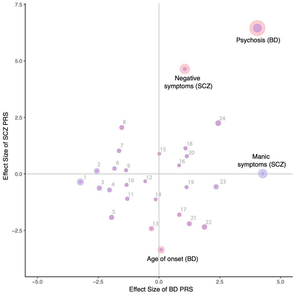 As part of the Psychiatric Genomics Consortium, we are seeking to gain insight into the fundamental genetic differences between related disorders like schizophrenia and bipolar disorder. We have previously identified a polygenic component that distinguishes these disorders but have yet to identify any particular genomic loci reaching genome-wide significance. We are currently compiling a much larger dataset to further this understanding. Additionally, we will incorporate our previous result showing a correlation between the bipolar genetic risk score and a clinical measure of mania in schizophrenia patients to build knowledge of molecular characterizations of disease. With larger samples and more phenotypic information we aim to improve risk prediction to be clinically useful in deciding appropriate treatment course for an individual with one of these disorders.